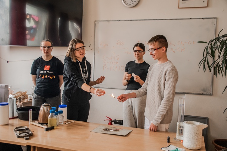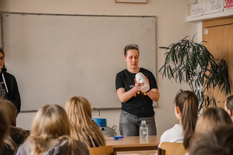 Hodina moderní chemie pořádaná VŠCHT proběhla přímo v prostorách naší školy a zúčastnily se jí téměř všechny třídy gymnázia.