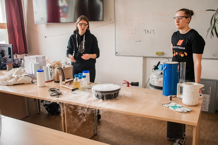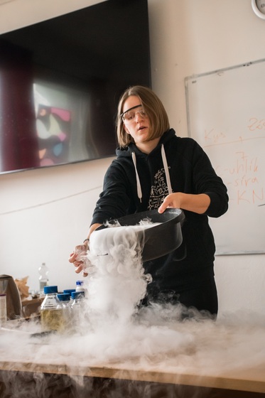 Na závěr suchý led vytvořil hustou mlhu, která podtrhla atraktivitu celé ukázky a zanechala silný dojem ze světa moderní chemie.